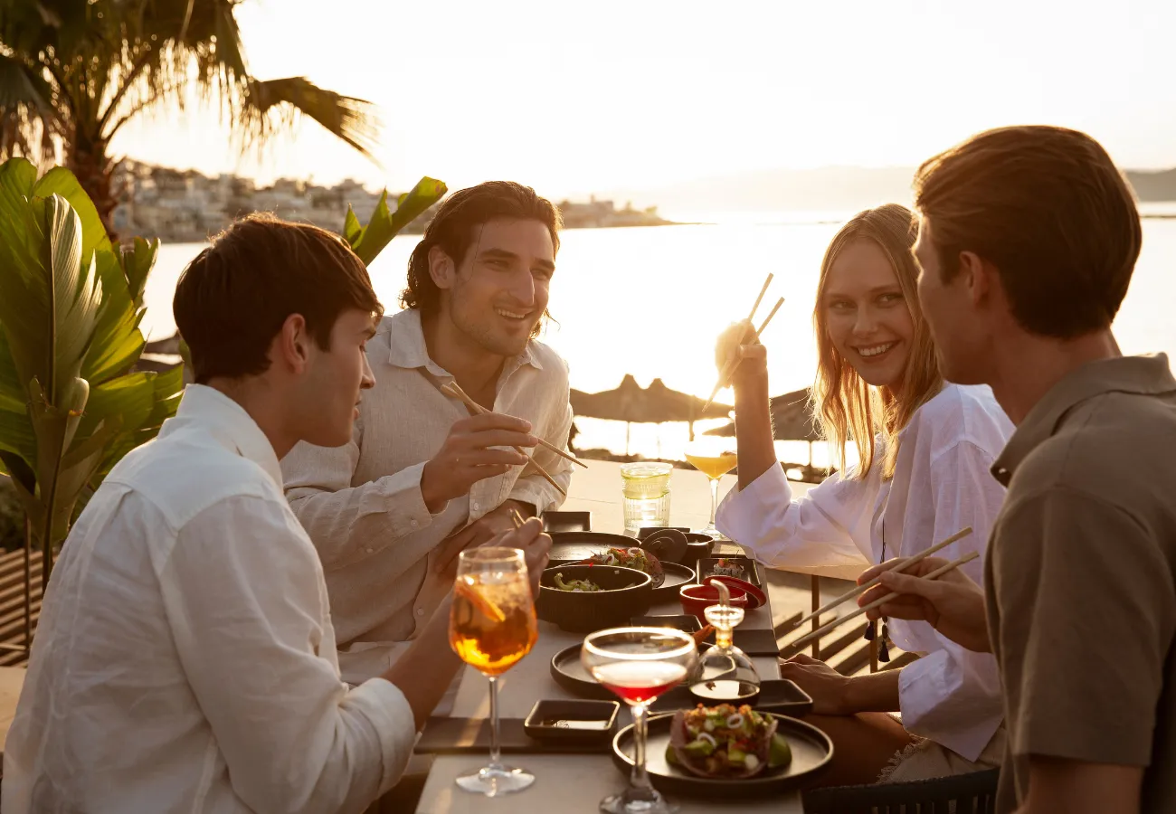 A fusion of lavish ancient Greek feast, gourmet cuisine, crafted mixology, and modern revelry at signature venues including the award-winning neo-Greek seafood restaurant Topos, Raw Bar pairing champagne with eclectic gastro finger foods, and the new culinary venture of Domes, Antonino’s Italian restaurant, where effortless elegance and dolce vita energy collide.